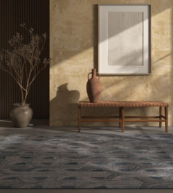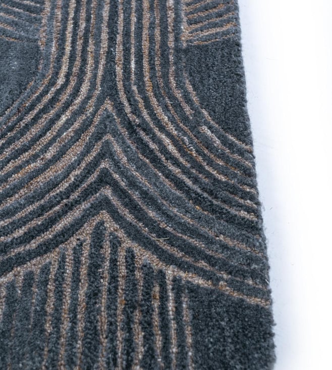 This 8x10 ft hand-tufted rug in gravel gray and sepia introduces striking geometric and stripe patterns. Its wool-poly blend offers comfort and resilience, while subtle blue accents add depth. Perfect for living rooms, bedrooms, or offices, it balances function with design sophistication. As part of the Pathways collection, it reflects a love for modern geometry and everyday luxury.