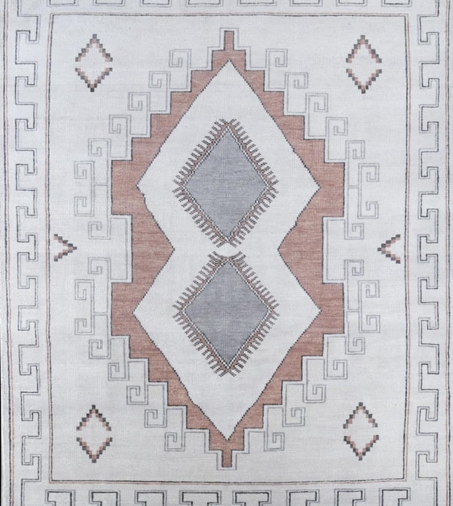This 8x10 ft hand-knotted wool rug in Antique White and Copper Blush combines artisanal beauty with lasting function. Its ivory Moroccan and tribal pattern highlights traditional craftsmanship while offering a versatile look for both contemporary and rustic interiors. The wool-cotton blend provides comfort underfoot with dependable durability, making it ideal for high-traffic areas like living rooms or bedrooms. From the Thyme collection, this rug reflects cultural heritage and skilled weaving, creating a timeless accent that enriches your home¿s style.