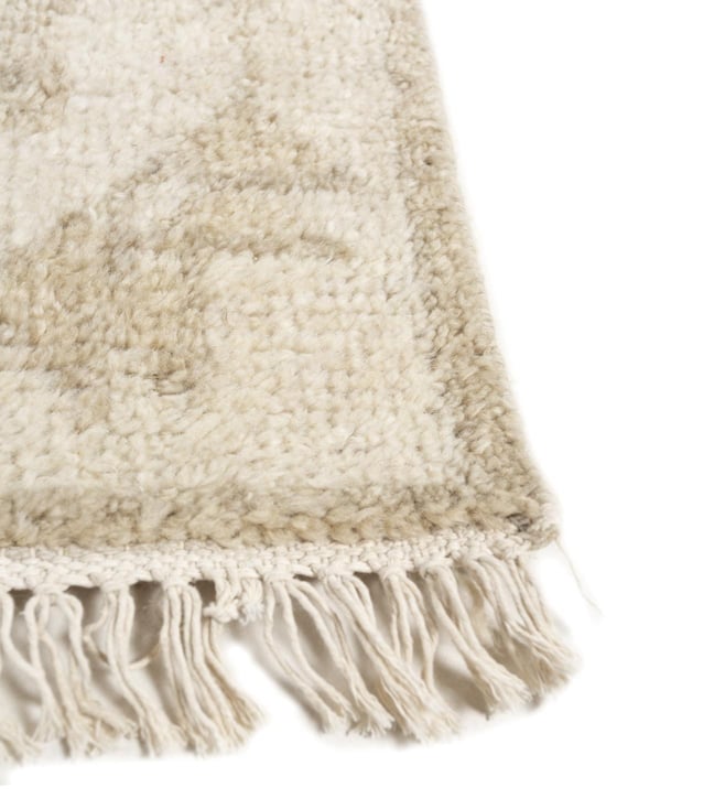This 8x10 ft hand-knotted wool rug in White Ice and Driftwood brings artisanal charm to your space. Its ivory Moroccan and tribal pattern reflects timeless craftsmanship while pairing effortlessly with a wide range of d¿cor styles. The wool-cotton blend delivers softness underfoot and dependable durability, making it suitable for both low- and high-traffic areas. From the Thyme collection, this rug combines classic hand-knotting techniques with tribal-inspired design, resulting in a stylish, versatile, and enduring accent piece for your home.