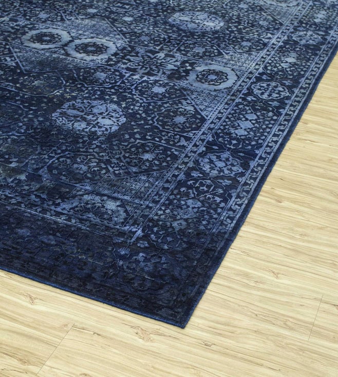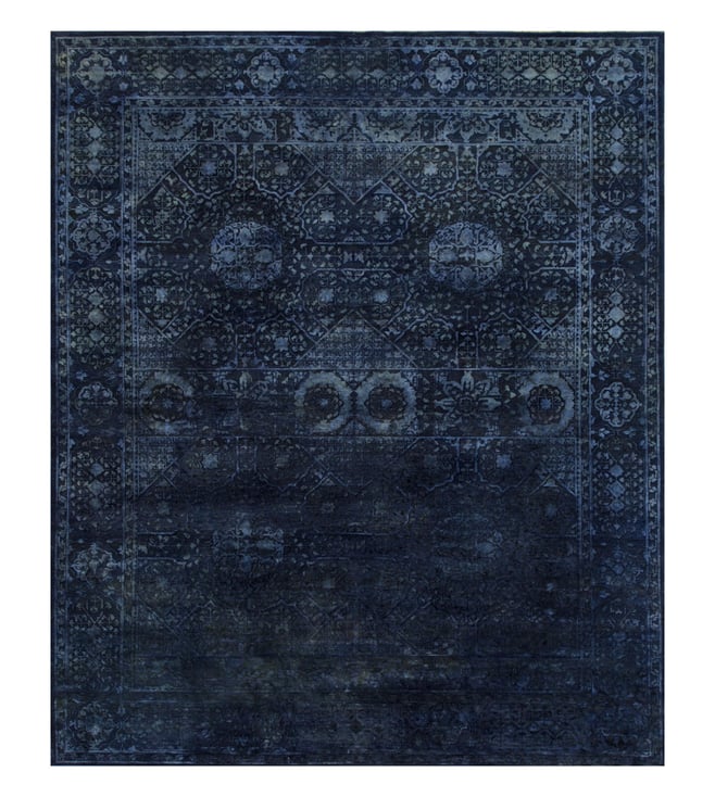 Jaipur RugsCarpet For Living room 8x10 Feet Blue Wool Silk Rectangle Vintage Distressed Rug
