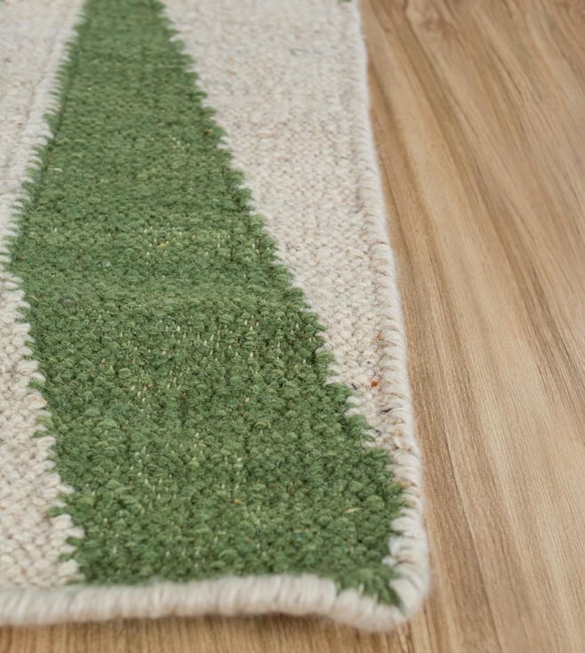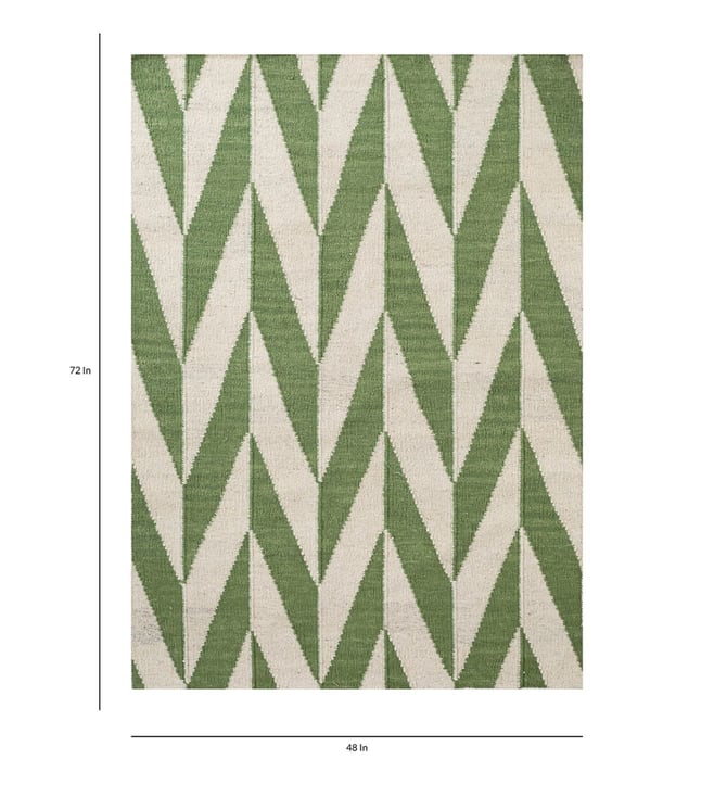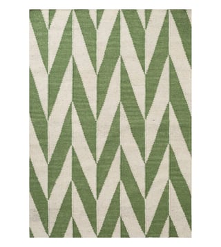 Jaipur Rugs Green Color Wool Geometric Handmade Dhurrie (4X6 Feet Rectangle)