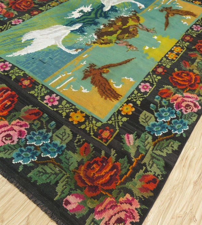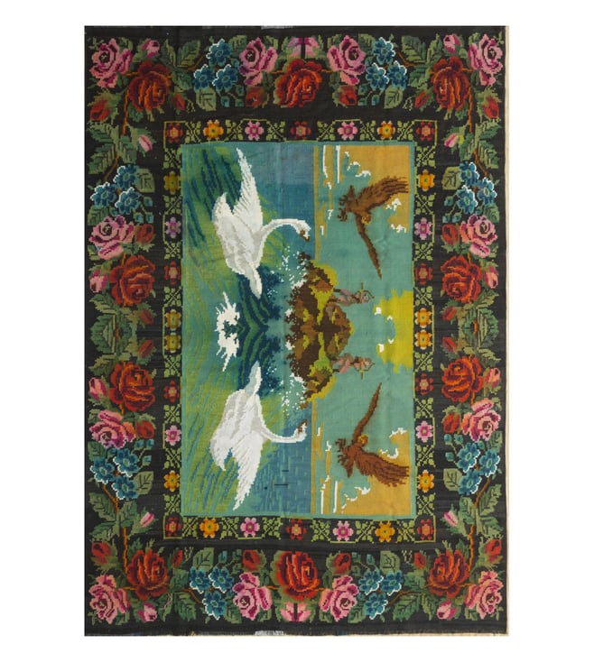 Jaipur Rugs Green Color Wool Kilim Handmade Knotted Rug (6'6X9 Feet Rectangle)