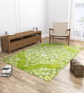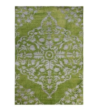 Jaipur Rugs Green Color Wool & Viscose Damask Handmade Knotted Rug (5X8 Feet Rectangle)