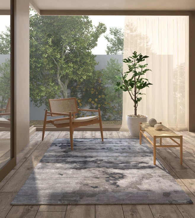 Jaipur Rugs Grey & Black Color Viscose Abstract Handmade Tufted Rug (9X12 Feet Rectangle)