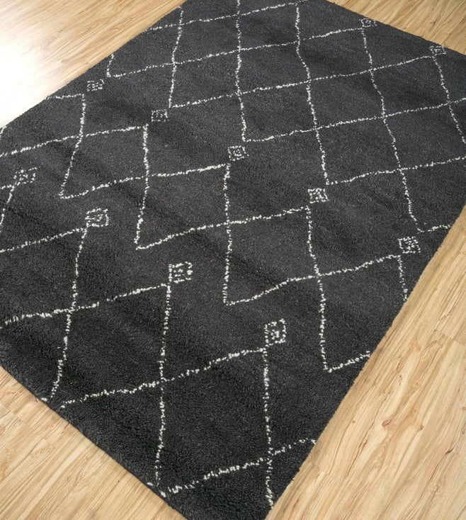 Jaipur Rugs Grey & Black Color Wool Moroccan Handmade Knotted Rug (4X6 Feet Rectangle)