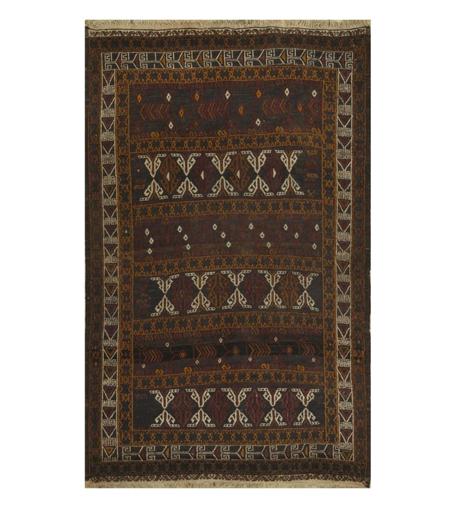 Jaipur Rugs Grey & Black Color Wool Oriental Handmade Dhurrie (3'9X5'10 Feet Rectangle)