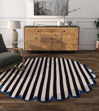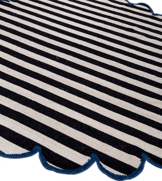 A symphony of black wool, this Jaipur rug is a statement piece for the modern home. Its irregular flat weave creates a captivating texture, adding depth and dimension to your living room or bedroom. The 8x8 feet size provides ample coverage, while the weight of 7.04 kgs ensures durability and longevity. The rich black hue adds a touch of sophistication and elegance, making it a perfect complement to any d¿cor. Embrace the artistry of handwoven craftsmanship and elevate your space with this timeless and luxurious rug.