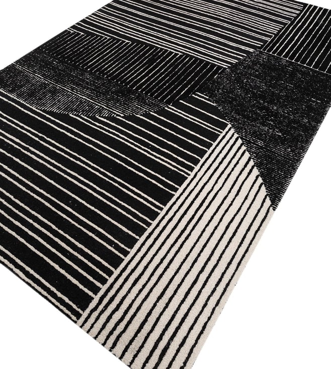 A symphony of understated elegance, this 6x9 ft. black wool rectangle rug from Jaipur Rugs transforms your living room or bedroom into a haven of sophistication. Woven with meticulous care, the rug's deep black hue exudes a timeless charm, grounding your space with a sense of quiet luxury. Its soft, plush wool pile invites bare feet, offering a comforting warmth underfoot. The rug's substantial weight (6.9 kgs) ensures a luxurious feel and lasting durability, making it a statement piece that will grace your home for years to come.