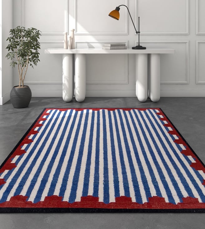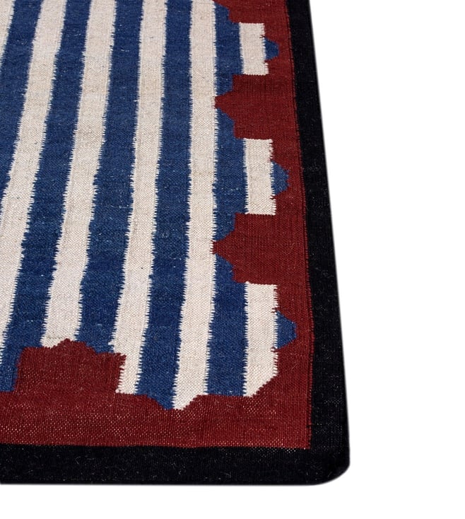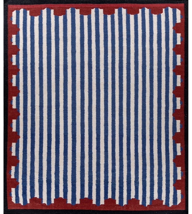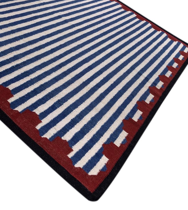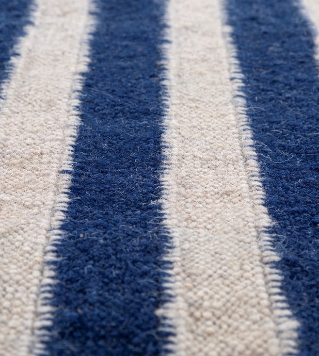 A symphony of blue, this handwoven Jaipur wool rug is a masterpiece of timeless elegance. Its intricate patterns, woven with meticulous precision, create a mesmerizing visual tapestry that adds depth and texture to your space. The luxurious wool fibers, soft to the touch, provide a comforting warmth underfoot, while the rug's durable construction ensures years of enjoyment. Measuring 5x8 feet, this rectangular flat weave is a statement piece that effortlessly elevates your home decor, transforming it into a sanctuary of style and comfort.