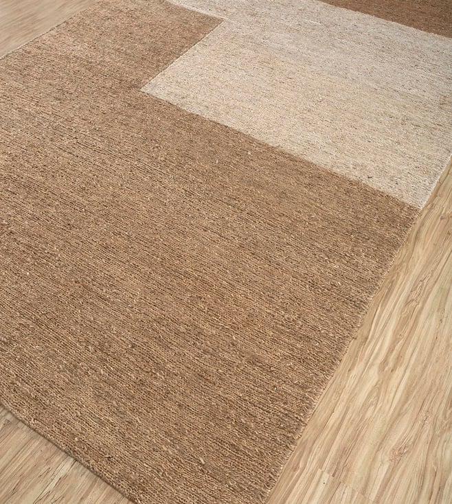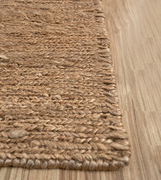 Embrace the earthy charm of Jaipur Rugs' Living Room Bedroom Brown Jute rug. Handwoven with meticulous care, this irregular flat weave boasts a rich brown hue that complements any d¿cor. Its natural jute fibers create a textured, inviting surface, adding warmth and depth to your space. Measuring 6x9 feet, it's the perfect size for anchoring your living room or bedroom, while its weight of 17.28 kgs ensures durability and longevity. Let the rustic beauty of this handcrafted rug transform your home into a haven of comfort and style.