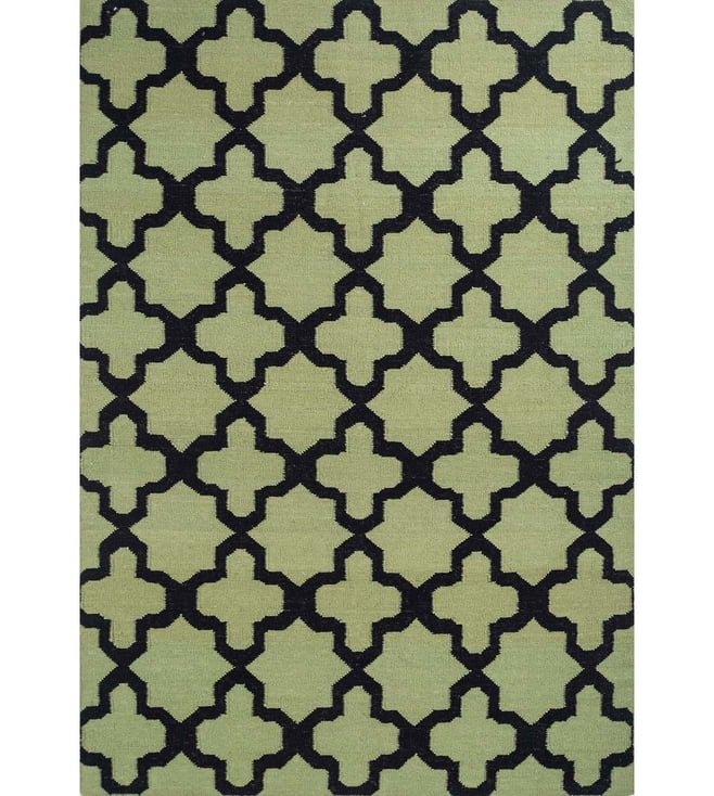Embrace the tranquility of nature with this exquisite Jaipur rug, woven from lush green wool. Its intricate flat weave design adds a touch of sophistication to your living room or bedroom, while its generous 5x8 feet size provides ample coverage. The soft, natural fibers create a cozy and inviting atmosphere, while the rug's lightweight design (4.4 kgs) makes it easy to move and rearrange. This timeless piece will elevate your space with its understated elegance and enduring beauty.