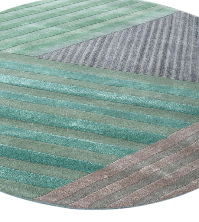 Escape to serenity with the Jaipur Rugs Living Room Bedroom Green Wool & Viscose Round Rug. This 6-foot diameter masterpiece, woven with meticulous craftsmanship, features a captivating blend of lush green hues that evoke the tranquility of a verdant forest. The soft, luxurious wool and viscose fibers create a tactile experience that is both comforting and elegant. Its circular shape adds a touch of whimsy and sophistication to any space, while its substantial weight ensures durability and longevity. Infuse your home with a sense of peace and natural beauty.