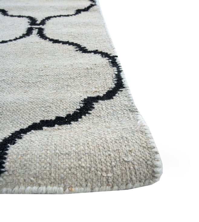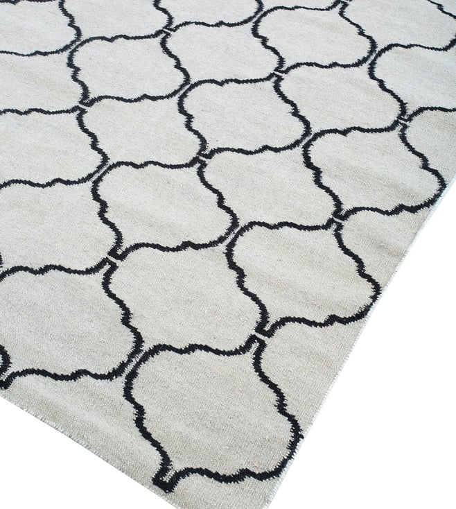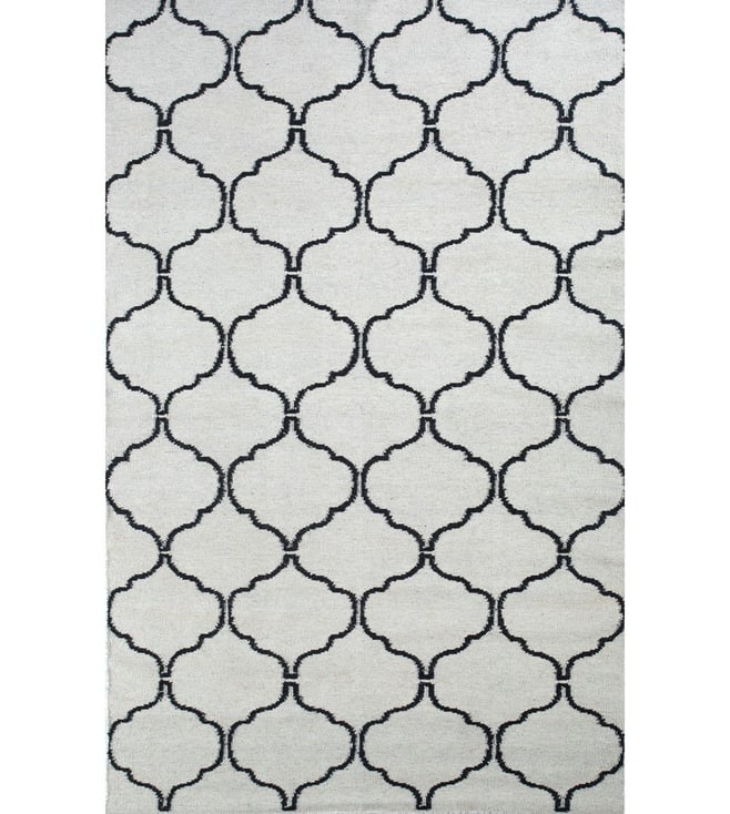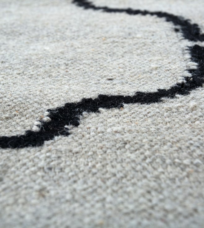 A symphony of sophistication, this Jaipur rug transforms your living room or bedroom into a haven of understated elegance. Woven from the finest grey and black wool, its intricate flat weave pattern creates a captivating interplay of light and shadow. The rectangular shape, measuring 5x8 feet, perfectly complements any space, while the weight of 4.4 kgs ensures durability and a luxurious feel underfoot. This rug is more than just a floor covering it's a statement piece that speaks volumes about your refined taste.