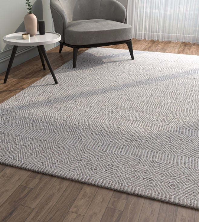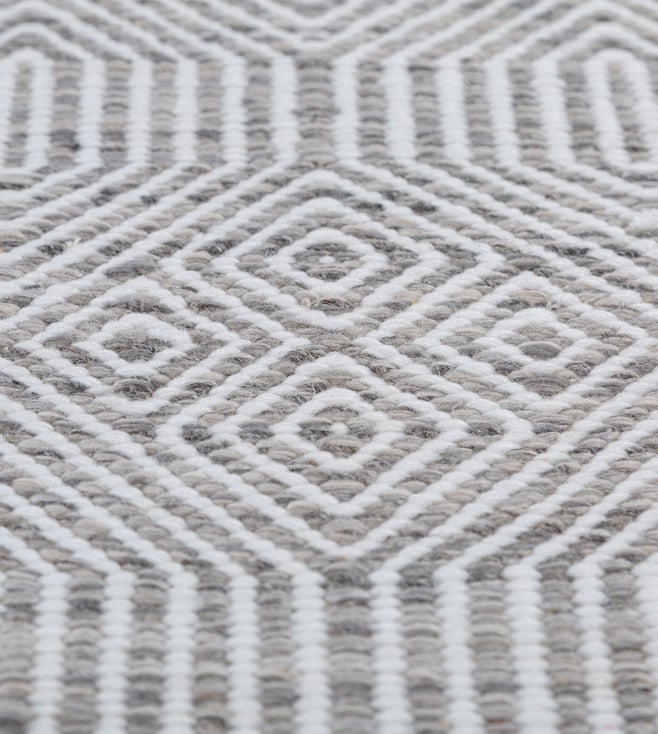 Embrace the timeless elegance of Jaipur Rugs' Grey Wool & Polyester Rectangle Flat Weave. This 6x9 ft rug, weighing 5.94 kgs, seamlessly blends contemporary style with traditional craftsmanship. Its subtle grey hues create a calming ambiance, perfect for both living rooms and bedrooms. The flat weave construction offers a durable and low-maintenance surface, while the blend of wool and polyester ensures a soft and comfortable feel underfoot. Its rectangular shape complements a variety of furniture arrangements, adding a touch of sophistication to any space.