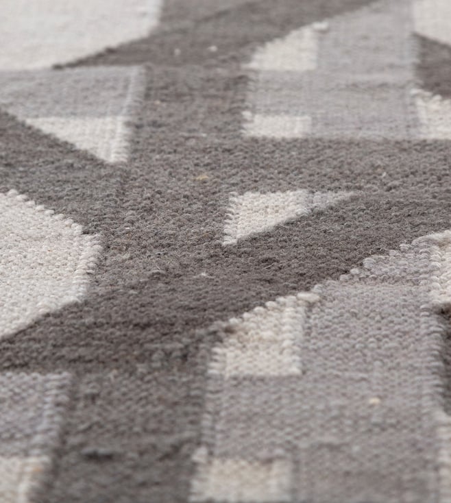 Embrace understated elegance with this Jaipur Rugs grey wool flat weave. Woven with meticulous craftsmanship, its subtle texture adds depth and dimension to your living room or bedroom. The rectangular shape, measuring 6x9 feet, provides ample coverage while the weight of 5.94 kgs ensures durability and longevity. This rug's timeless design seamlessly blends with any d¿cor, creating a sophisticated and inviting atmosphere. Let the soft, natural wool fibers caress your feet, adding a touch of warmth and comfort to your space.