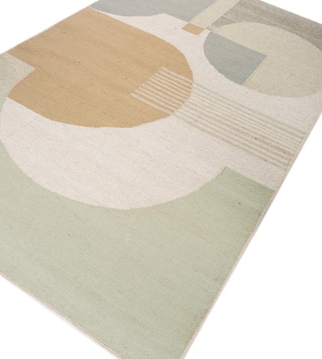 A symphony of ivory wool, this Jaipur rug whispers elegance into your living room or bedroom. Its intricate flat weave, crafted with meticulous handwork, creates a subtle texture that invites bare feet. The rectangular shape, measuring 5x8 feet, anchors the space with a timeless grace. Weighing in at 4.4 kgs, it feels substantial yet effortlessly blends with any d¿cor, adding a touch of understated luxury to your haven.