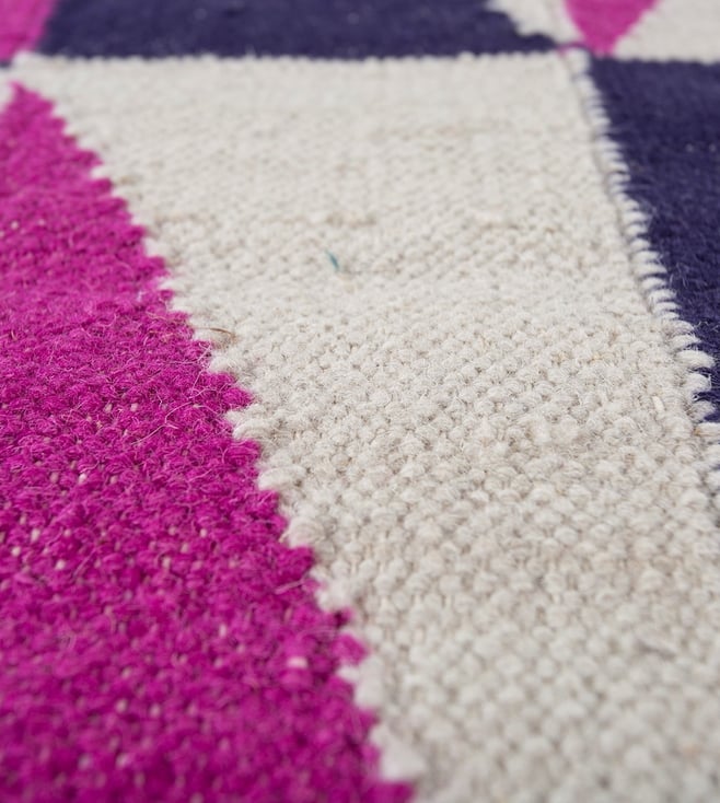 Embrace the enchanting allure of Jaipur Rugs' handwoven flat weave, a symphony of pink and purple wool. This rectangular masterpiece, measuring 5'3x7'6 feet, transforms any living room or bedroom into a haven of elegance. Its intricate design, woven with meticulous care, dances across the soft wool, creating a captivating tapestry of color and texture. The rug's weight, 4.33 kgs, speaks to its exceptional quality and durability, ensuring years of cherished beauty. Let this vibrant piece infuse your space with a touch of regal charm and timeless sophistication.