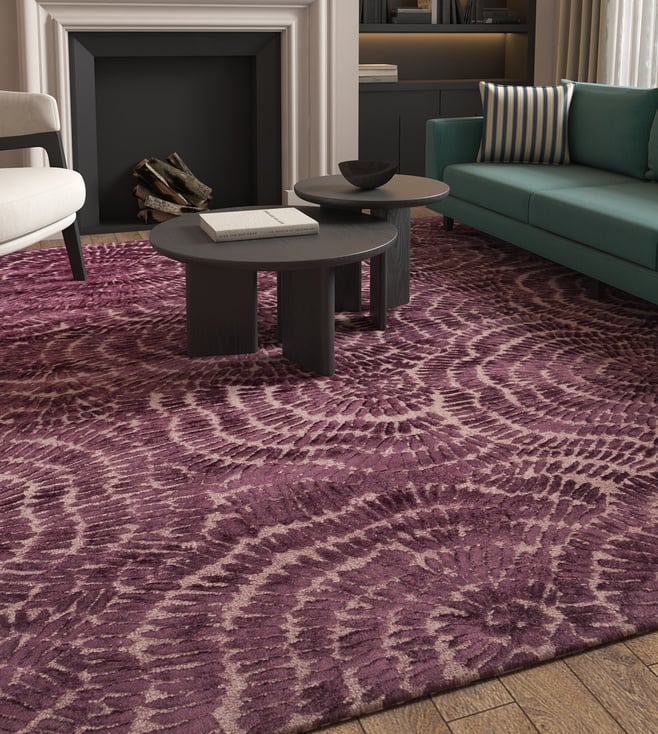 Embrace the regal allure of Jaipur Rugs' Purple Wool & Viscose Rectangle Rug. This 4x6 feet masterpiece, woven with luxurious wool and viscose, transforms your living room or bedroom into a haven of sophistication. Its rich purple hue, reminiscent of twilight skies, adds a touch of drama and elegance. The intricate hand-knotted design, a testament to skilled artisanship, creates a captivating focal point. Weighing 10.56 kgs, this rug exudes quality and durability, promising years of luxurious comfort underfoot.