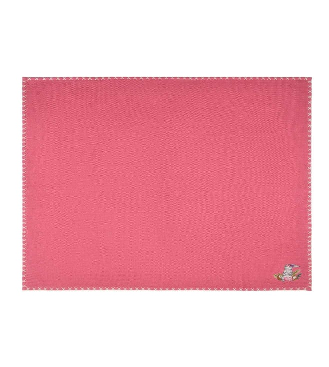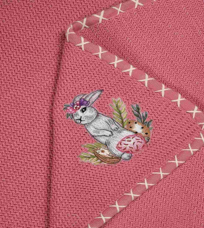 This soft and lightweight herringbone baby blanket comes with contrasting cross-stitch edging. An embroidered Easter rabbit adds to the warmth of the baby blanket. It has been designed with care using premium quality 100 percent cotton. Disclaimer: Product colour may slightly vary due to photographic lighting sources. Country of Origin - India.