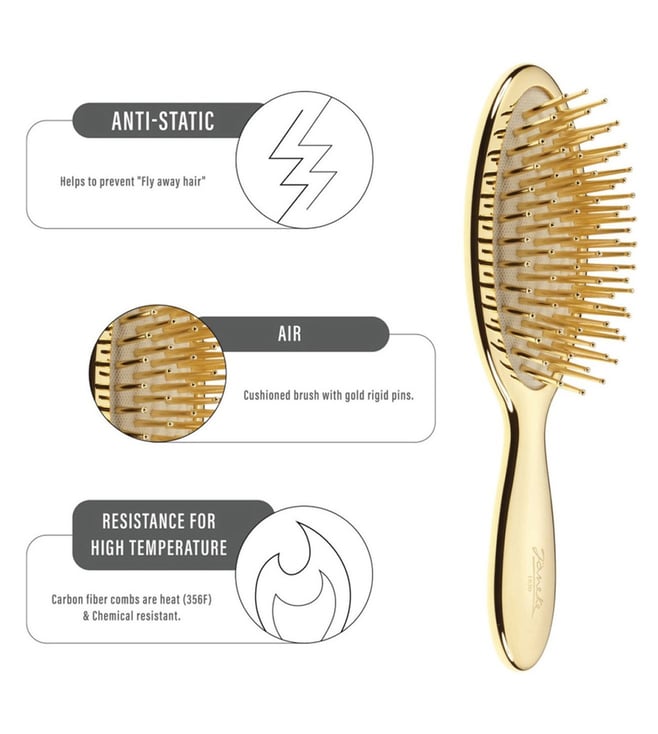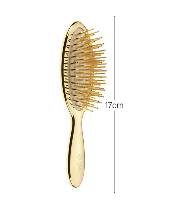 This Janeke 1830 golden air-cushioned brush with gold rigid pins 17.3x5 cm small and ABS + galvanically coated + rubber.