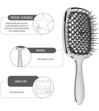 Innovative mini version with soft rounded tips. Gently detangles wet or dry hair, enhances blow-drying and stimulates the scalp. Ideal for precise styling and detangling short or fine hair. Travel-friendly, ergonomic and effective. Made of durable, shockproof material.