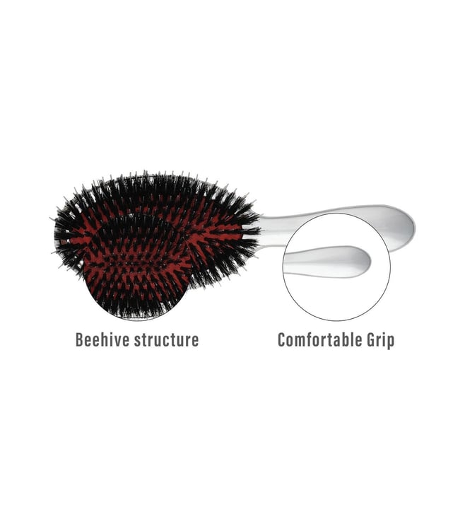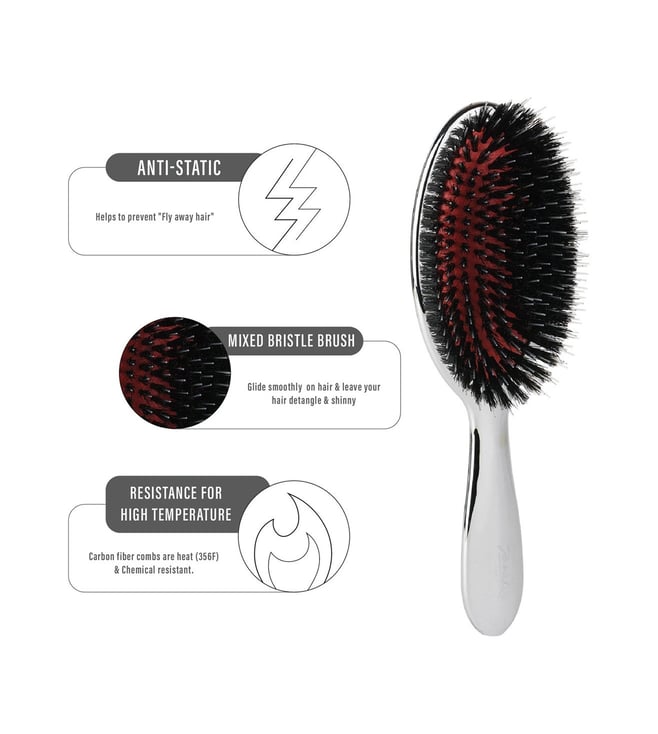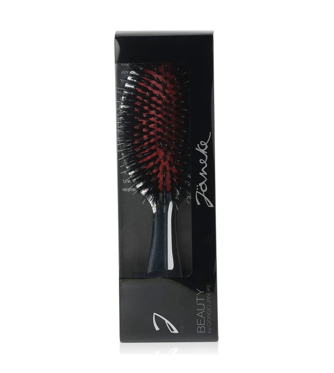 Small mixed bristle pneumatic JANEKE 1830 Cushioned with Bristles & Nylon Reinforcement Oval Hair Brush with nylon supports. Bristles leave the hair shiny, soft and free of tangles. Pneumatic cushioned bristles provide the ultimate comfort. Available in gold or chrome. Great for all hair types, especially medium to thick, nylon bristles gently detangle while natural bristles add shine, great for a handbag or travel case. Pneumatic pad makes brushing gentle on scalp.
