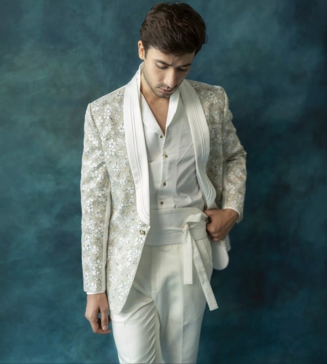 Jatin Malik Ivory Monet Snowline Tuxedo Set