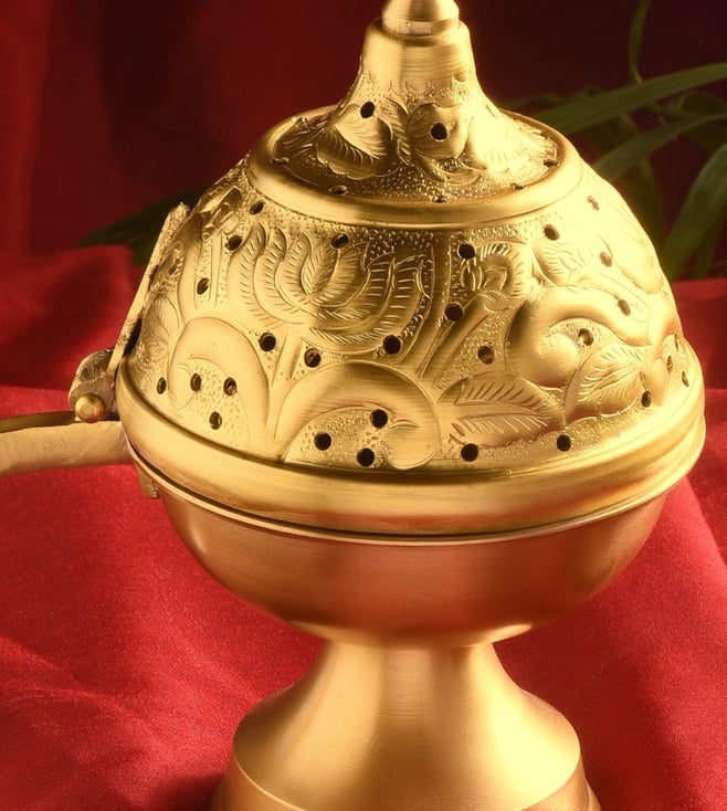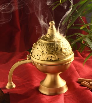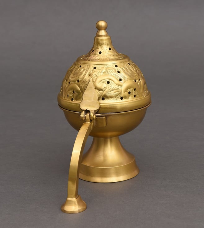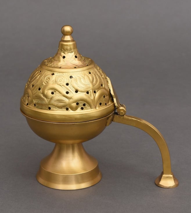 Elevate your sacred space with the exquisite Jaypore antique gold brass chitai dhoona. Handcrafted with intricate detailing and a timeless antique gold finish, this beautiful incense holder adds a touch of elegance to your home decor. The perfect blend of traditional design and modern aesthetics, this chitai dhoona not only enhances the ambiance but also creates a sense of tranquility during your spiritual practices. Bring a sense of peace and serenity to your home with this stunning piece that is sure to captivate and delight all who see it.