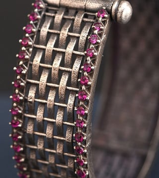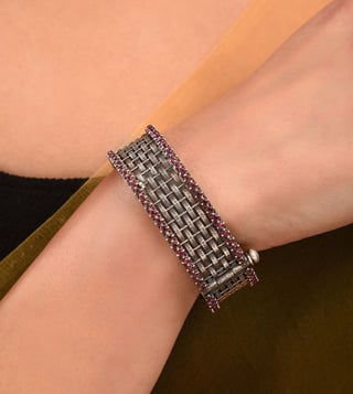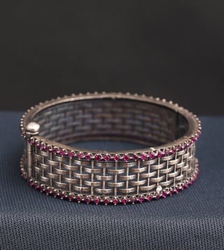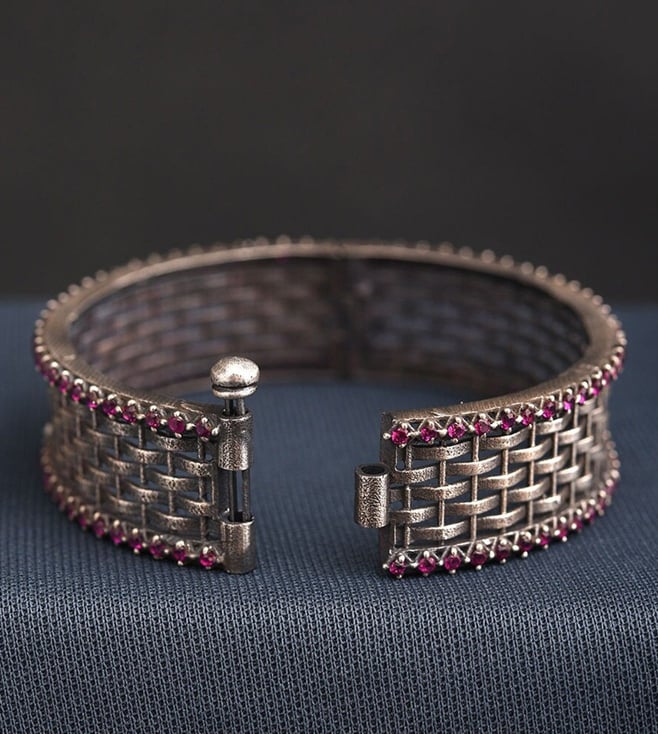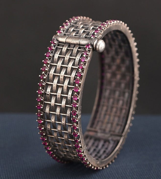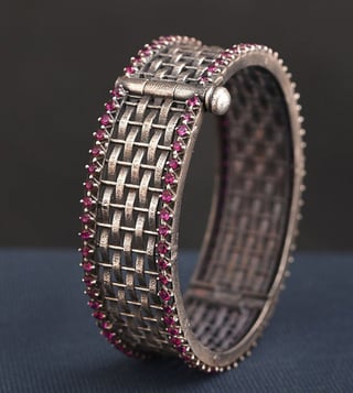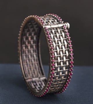 Introducing women silver hinged bangle made of the finest silver. This exquisite piece of craftsmanship comes from our divyanshi collection. Bring home a piece of modern indian aesthetic, reflecting crafts. Explore more artisanal finds from our bangles range.
