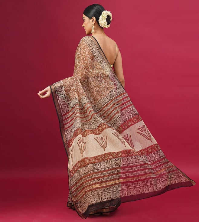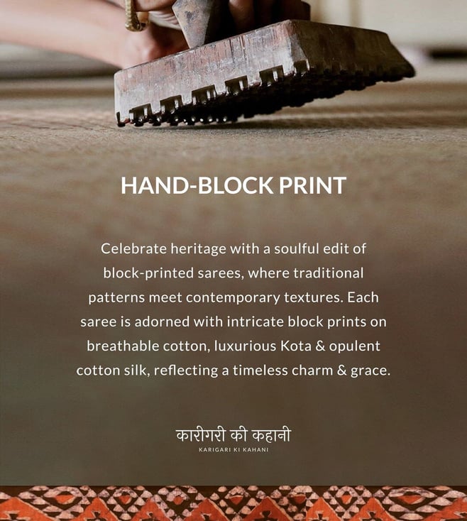 Elevate your ethnic wardrobe with the Jaypore Beige Brown Kota Block Print Saree. Crafted with exquisite detailing and traditional block printing techniques, this saree exudes elegance and charm. The soft beige and brown hues add a touch of sophistication to any occasion, making it a versatile and timeless addition to your collection. Made from high-quality fabric, this saree drapes beautifully and offers a comfortable fit, perfect for all-day wear. Stand out from the crowd and make a statement with this stunning piece that effortlessly blends traditional craftsmanship with contemporary style.