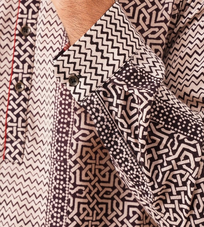 Elevate your wardrobe with our Jaypore Black Bagh Printed Regular Fit Kurta. This elegant kurta features a timeless black Bagh print, giving it a sophisticated and versatile look that can be styled for any occasion. The regular fit ensures comfort and ease of movement, while the high-quality fabric promises durability and long-lasting wear. Add a touch of traditional charm to your ensemble with this must-have piece that seamlessly blends style and comfort. Upgrade your wardrobe with our Jaypore Black Bagh Printed Regular Fit Kurta today!