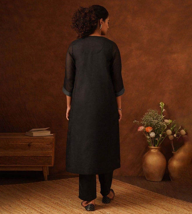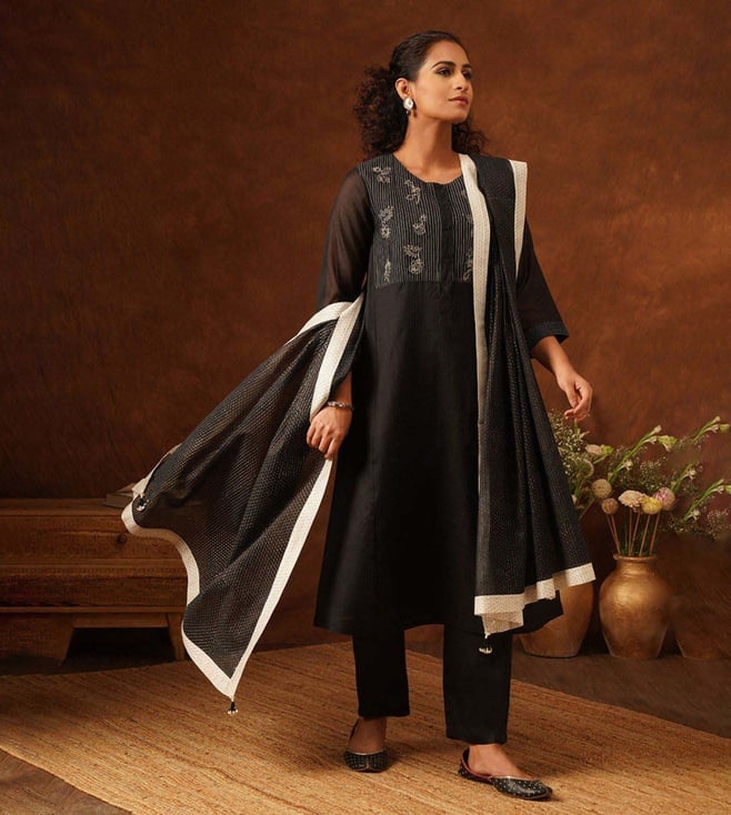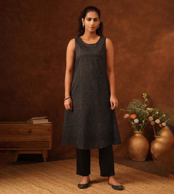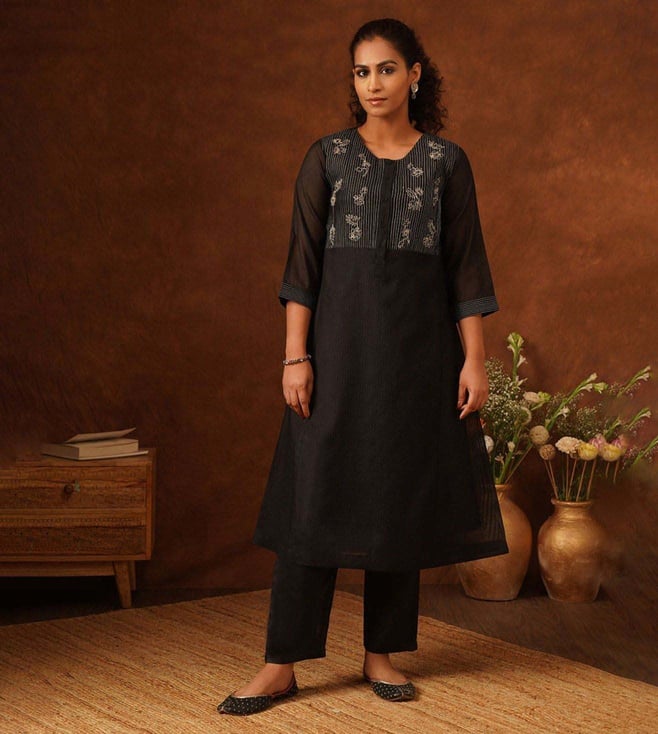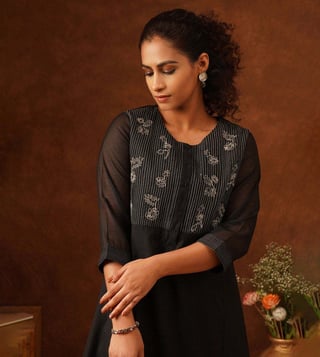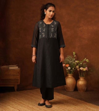 Elevate your everyday style with the Jaypore Black Embroidered Regular Fit Kurta. Crafted with intricate embroidery, this kurta effortlessly blends traditional charm with modern sophistication. The regular fit ensures a comfortable and flattering silhouette, perfect for any occasion. Whether you're dressing up for a special event or simply want to add a touch of elegance to your daily wardrobe, this kurta is sure to make a statement. Embrace timeless elegance and effortless style with the Jaypore Black Embroidered Regular Fit Kurta.