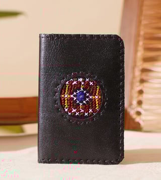 Jaypore Black Hita Embroidered Leather Extra Small Travel Kit