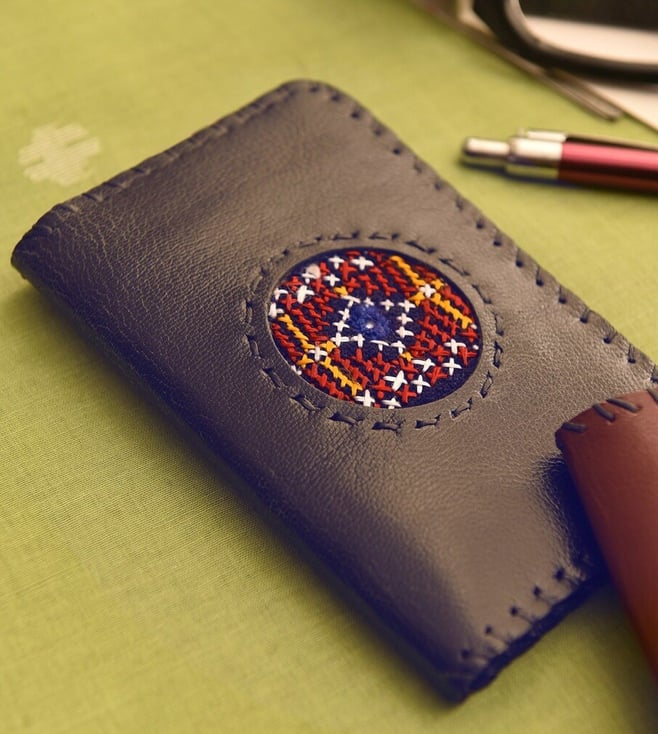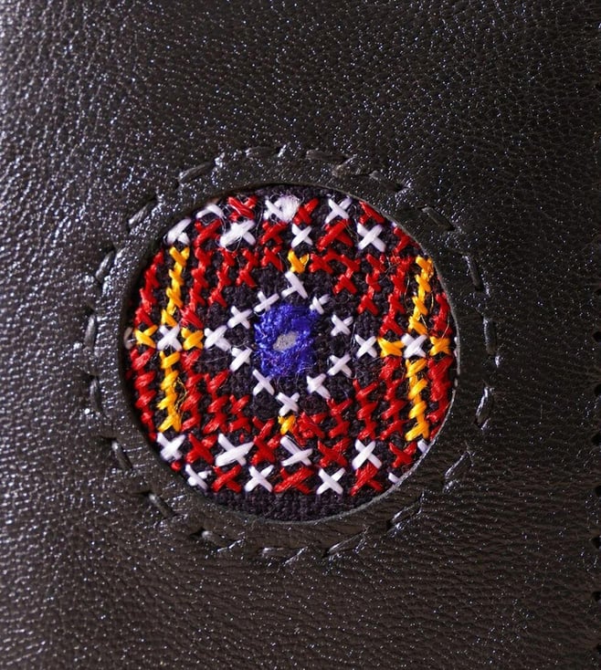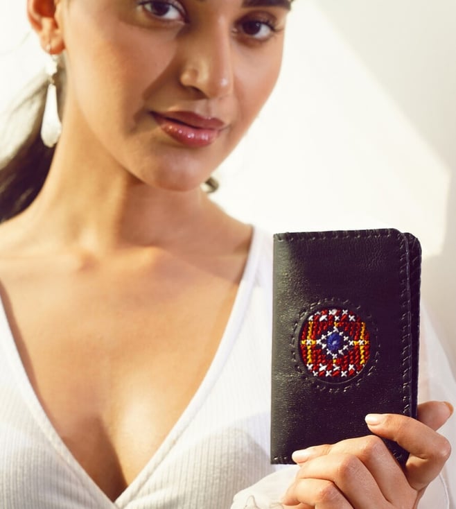 Introducing women black pure leather flap travel kit made of the finest pure leather. This exquisite piece of craftsmanship comes from this hita collection. Bring home a piece of modern indian aesthetic, reflecting crafts. Explore more artisanal finds from this travel kit range.