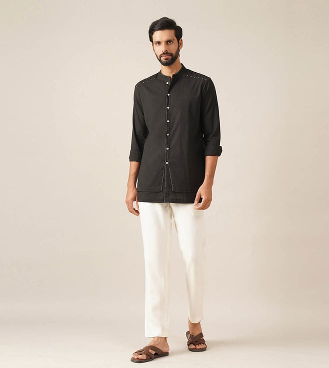 Elevate your ethnic wardrobe with the Jaypore Black Regular Fit Short Kurta. Crafted with premium quality fabric, this versatile piece offers a perfect blend of traditional charm and modern style. The regular fit ensures comfort, while the classic black color adds a touch of sophistication to any ensemble. Whether you're attending a formal event or a casual gathering, this kurta is the perfect choice for a sleek and polished look. Upgrade your style effortlessly with this timeless and versatile piece from Jaypore.