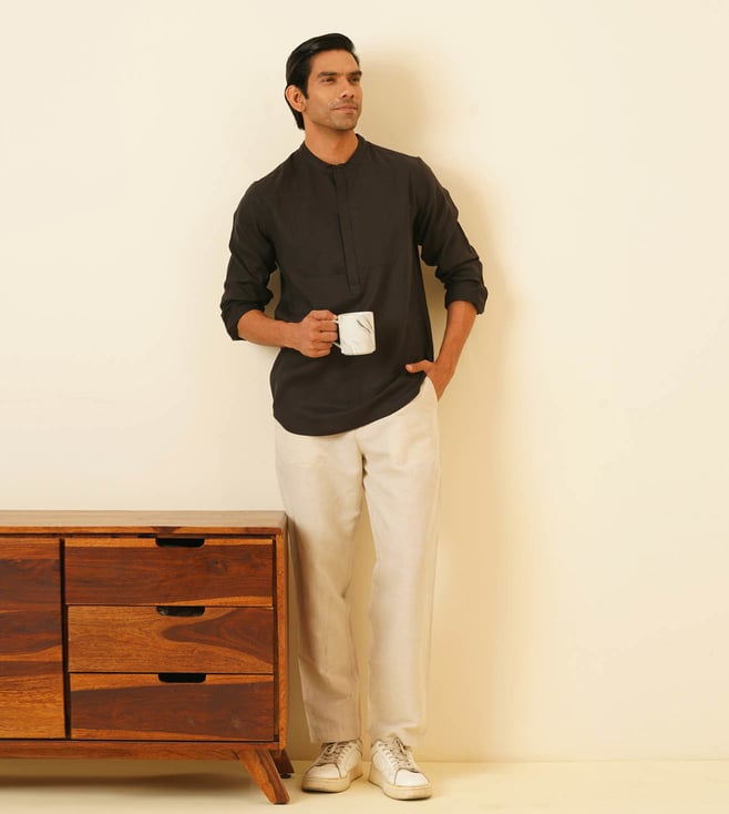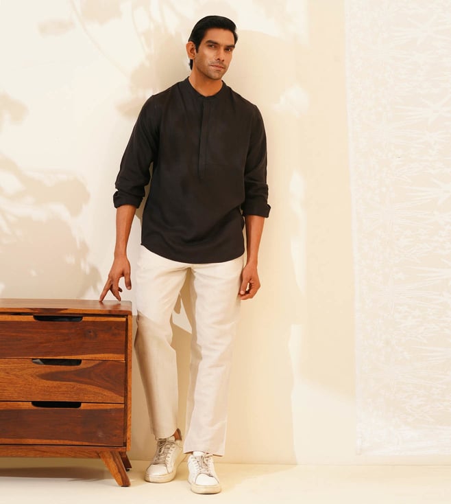 Elevate your wardrobe with the Jaypore Black Straight fit Short Kurta. This versatile piece offers a perfect blend of comfort and style, making it ideal for any occasion. The sleek black color and straight fit silhouette will flatter any body type, while the high-quality fabric ensures durability and long-lasting wear. Whether you're dressing up for a special event or keeping it casual, this kurta is a must-have addition to your collection. Experience the perfect combination of traditional charm and modern elegance with the Jaypore Black Straight fit Short Kurta.