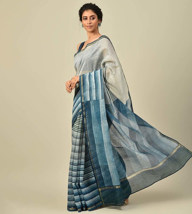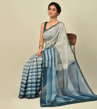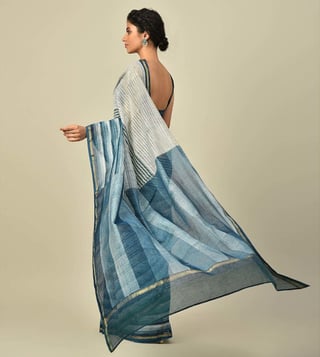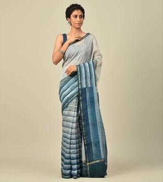 Jaypore Blue Block Print Saree