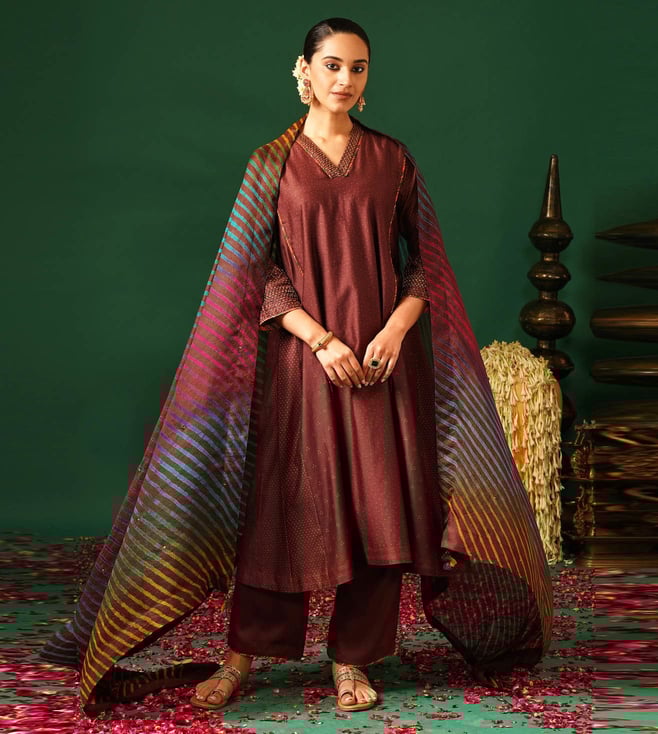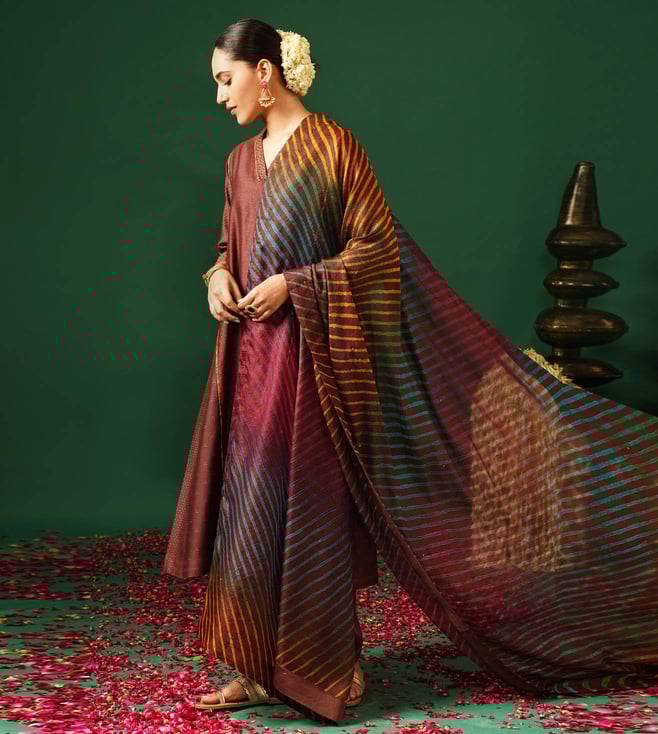 Jaypore Brown Silk Kota Lehriya Dupatta