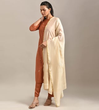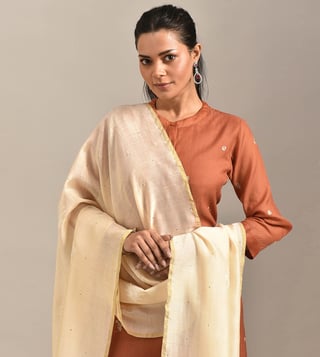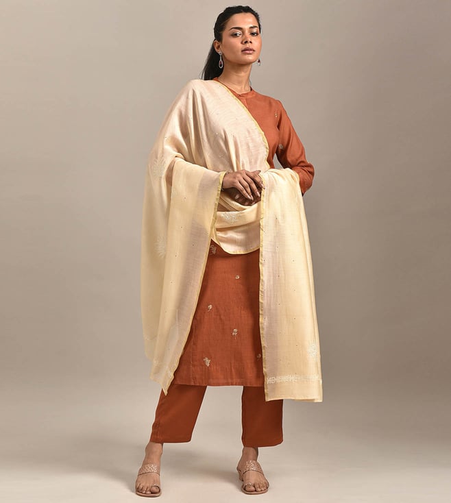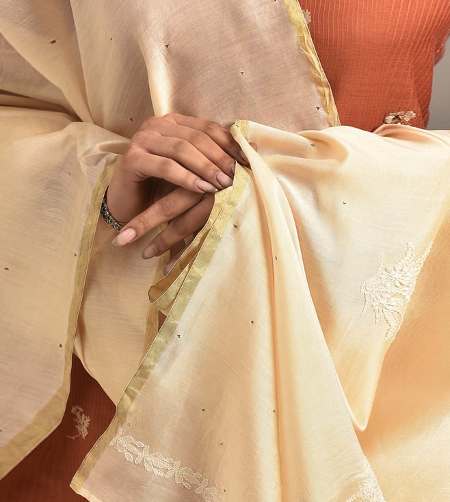 Jaypore Cream Cotton Silk Chikankari Dupatta
