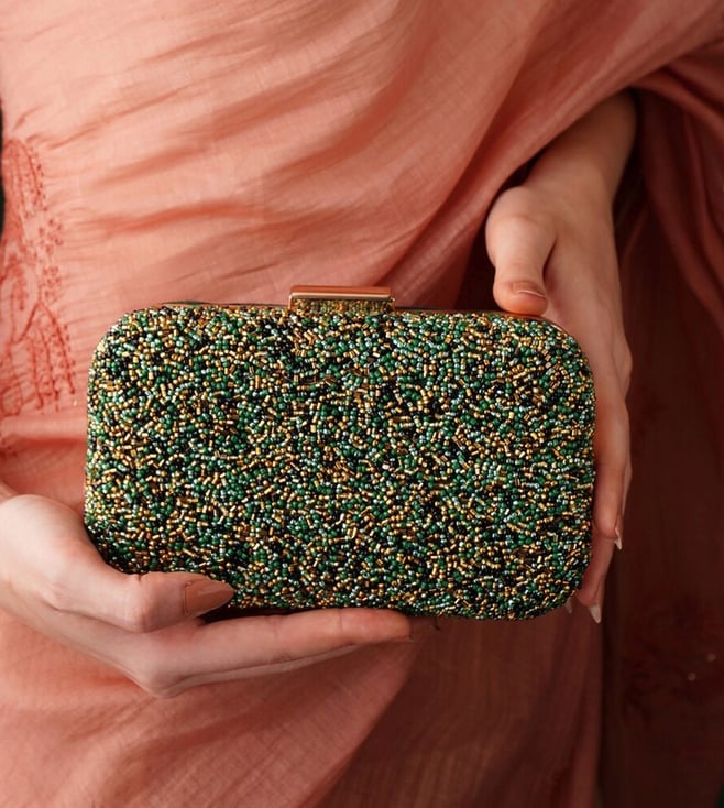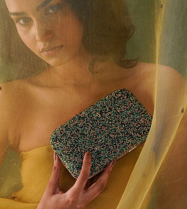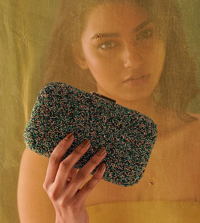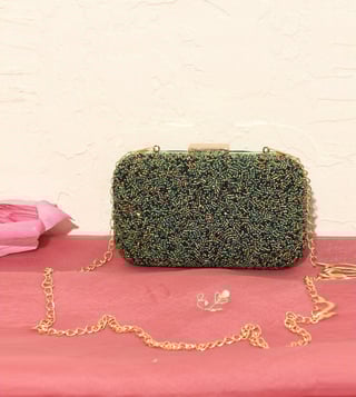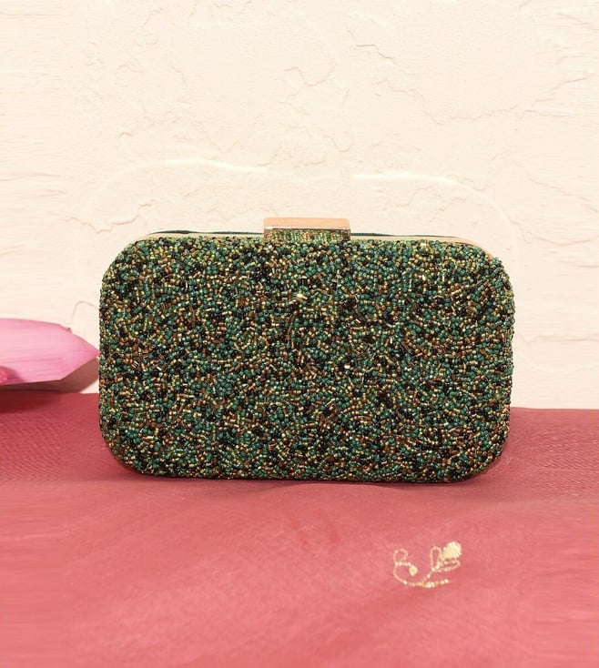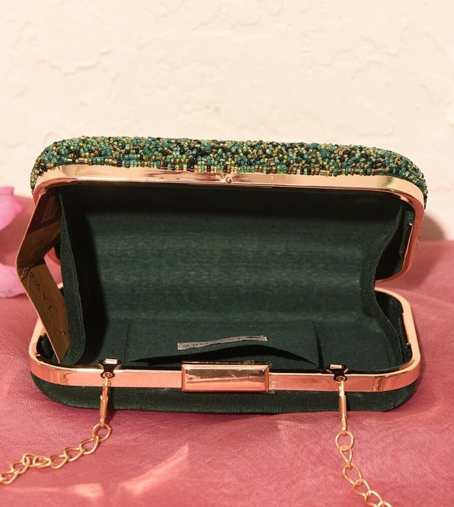 Jaypore Emerald Green Reva Embellished Medium Clutch
