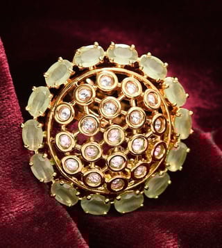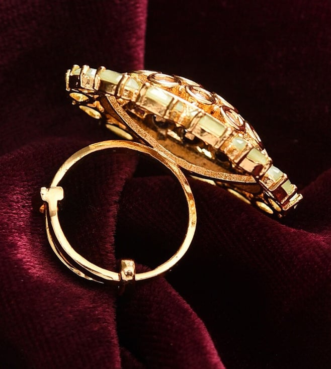 Introducing women kundan gold plated brass adjustable made of the finest brass. This exquisite piece of craftsmanship comes from our kanak collection. Bring home a piece of modern indian aesthetic, reflecting kundan crafts. Explore more artisanal finds from our rings range.