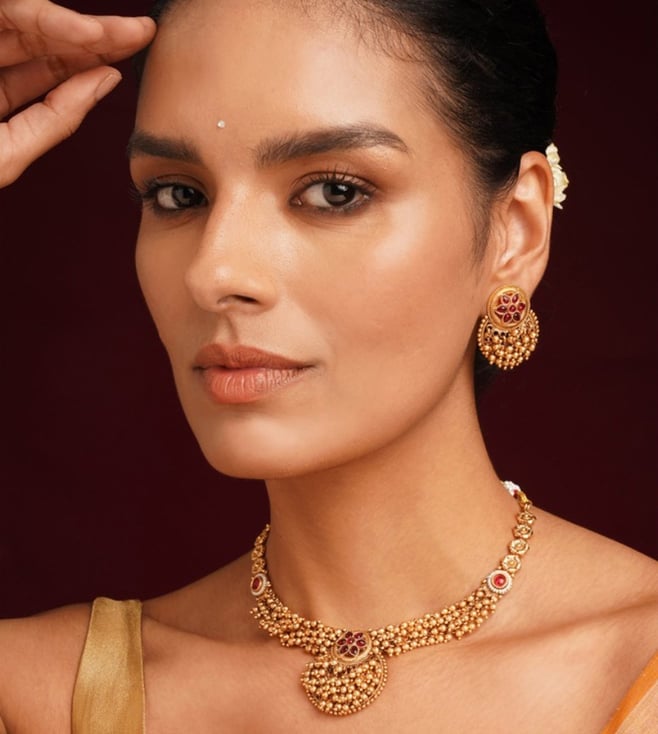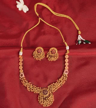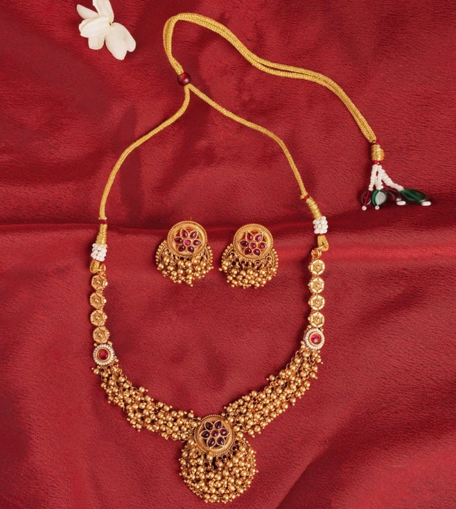 Jaypore Gold Sliding Dori Adjustable Brass Necklace & Earring Set