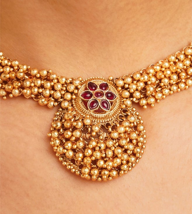 Introducing women gold sliding adjustable dori brass necklace made of the finest brass. This exquisite piece of craftsmanship comes from our kaelika collection. Bring home a piece of modern indian aesthetic, reflecting crafts. Explore more artisanal finds from our necklace range.