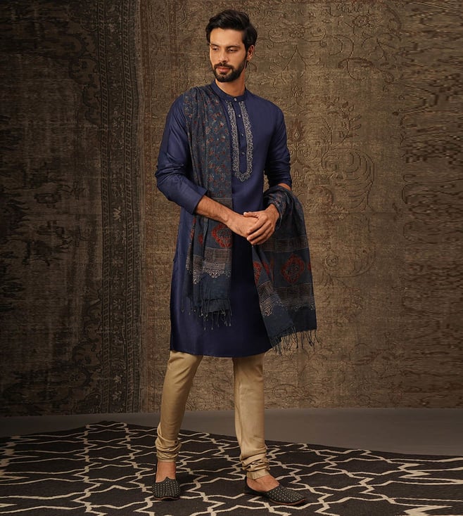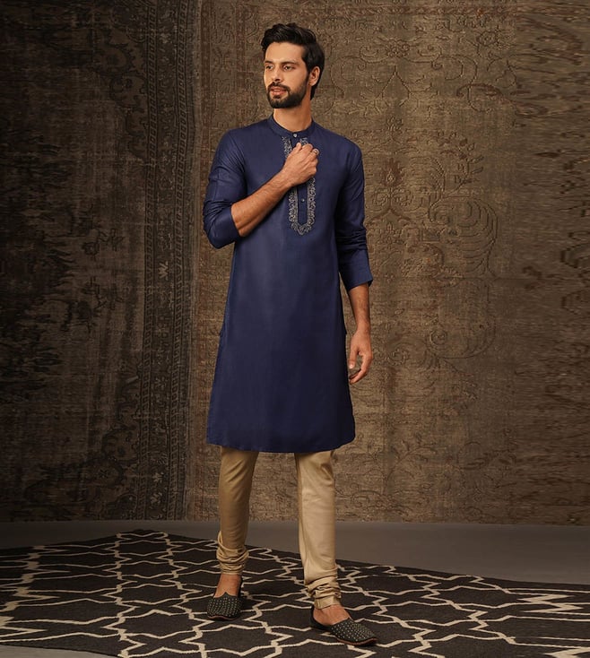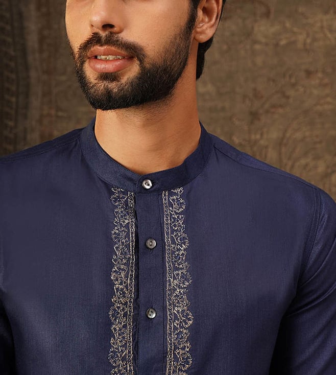 Jaypore Indigo Blue Embroidery Regular Fit Kurta