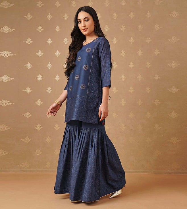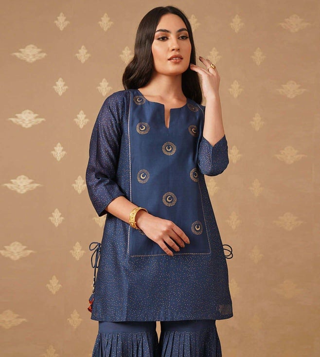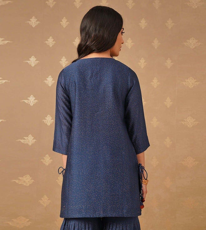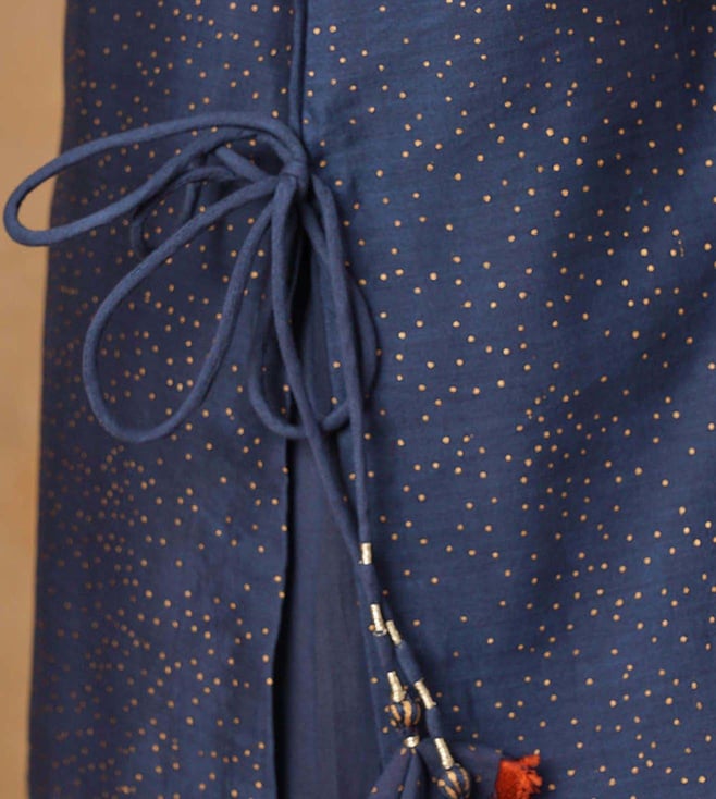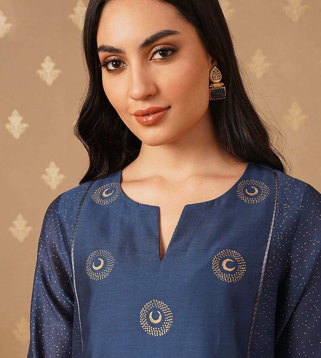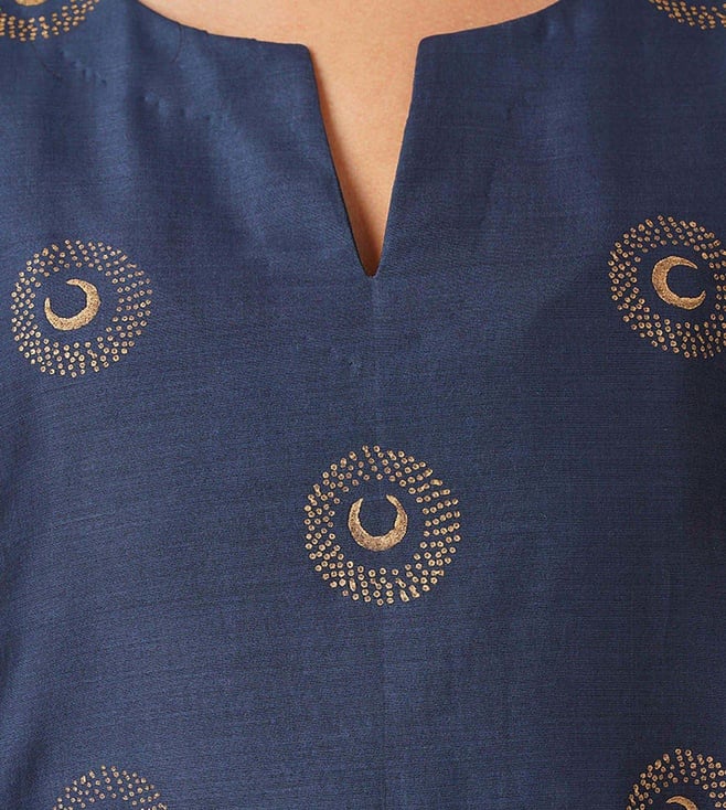 Jaypore Indigo Blue Printed Straight Fit Kurta