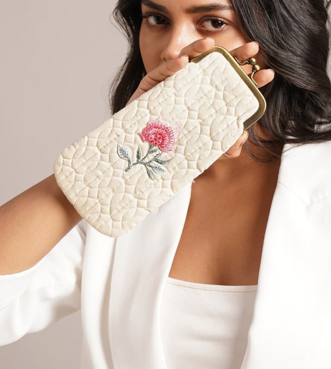 Introducing women ivory viscose blend snap travel kit made of the finest viscose blend. This exquisite piece of craftsmanship comes from this eva collection. Bring home a piece of modern indian aesthetic, reflecting crafts. Explore more artisanal finds from this travel kit range.