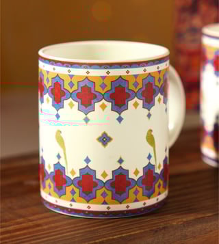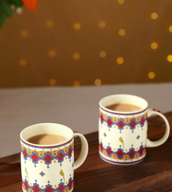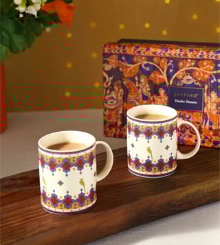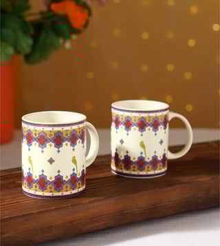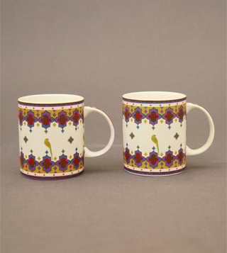 Jaypore Multicolor Premium Porcelain Decal Printed Mug - Set of 2 (270 ml)