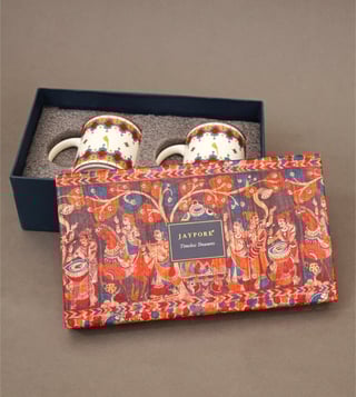 Elevate your morning coffee routine with the Jaypore multicolor premium porcelain decal printed mug. Crafted with high-quality porcelain and adorned with intricate decal prints, this mug combines style and functionality. The vibrant multicolor design adds a pop of personality to your table setting, making it a perfect gift for any coffee lover. Enjoy your favorite hot beverages in style with this beautiful and durable mug that is sure to brighten up your day.