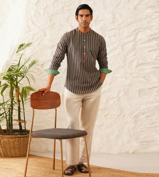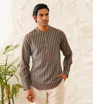 Jaypore Multicolour Striped Handloom Straight Fit Short Kurta