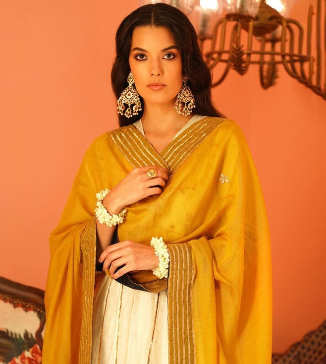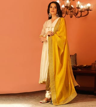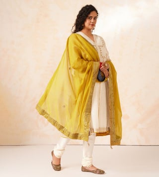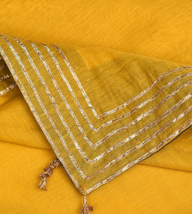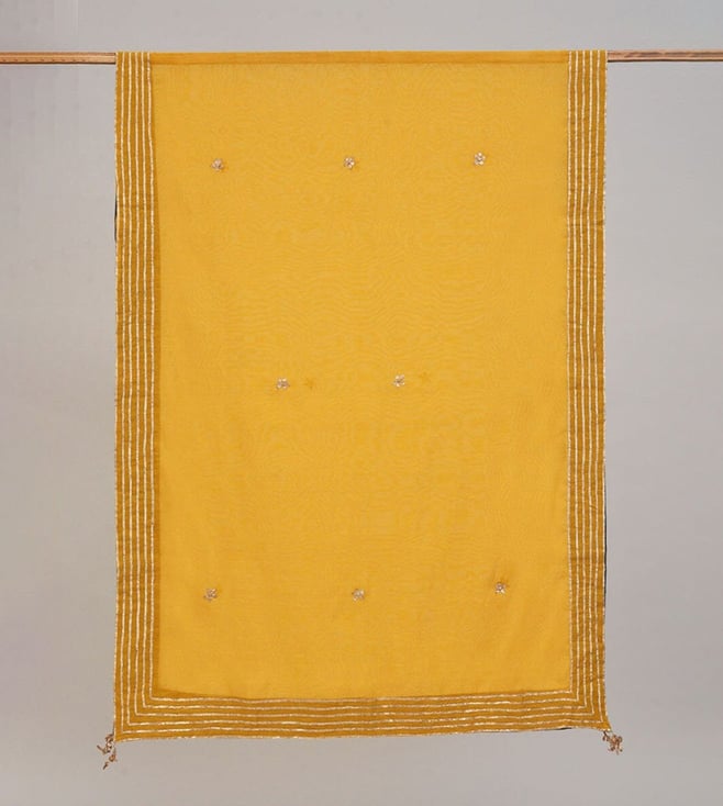Jaypore Mustard Yellow Cotton Silk Gota Patti Collection Dupatta